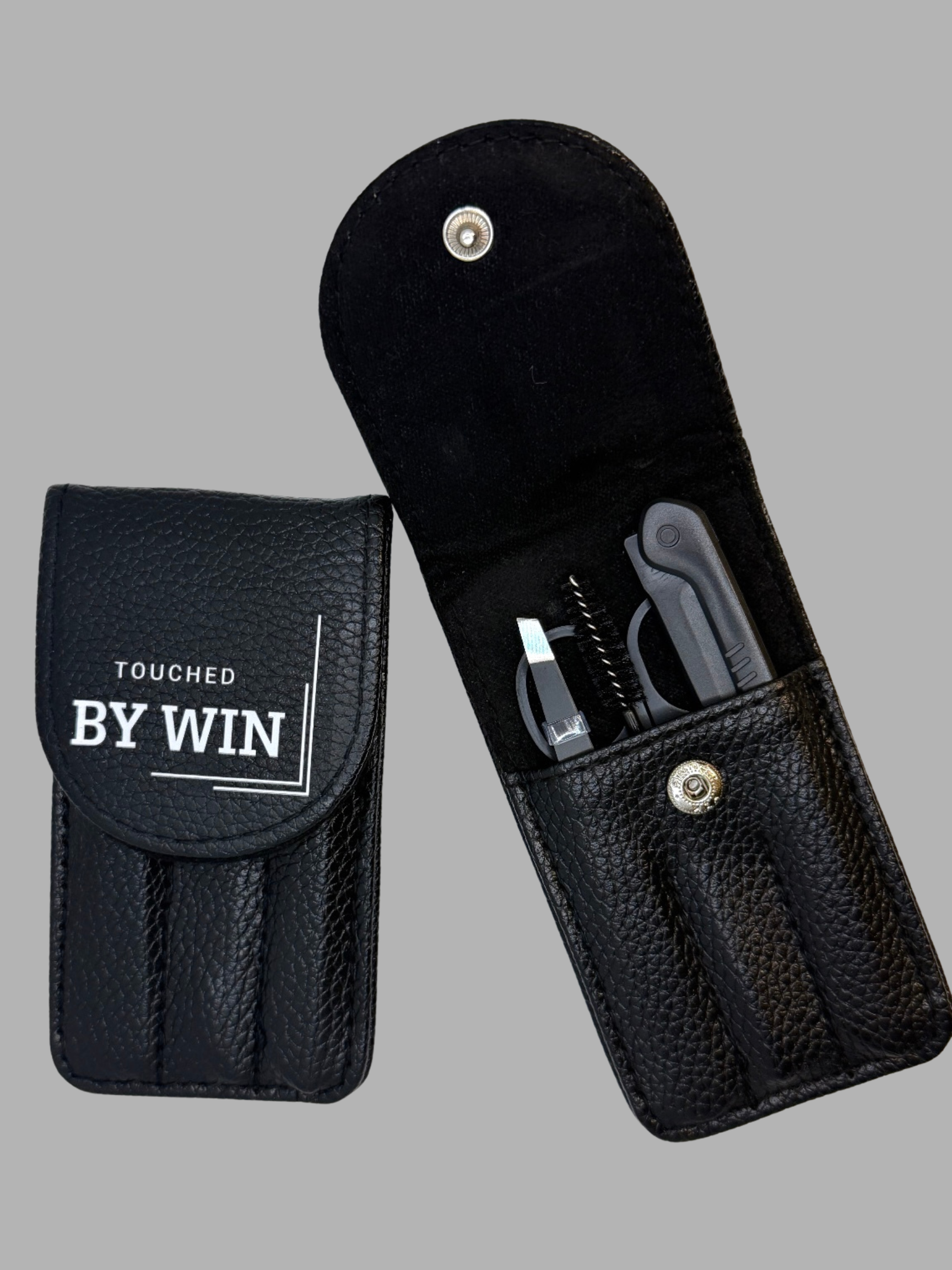 Packed inside a luxurious black leather pouch branded BY WIN, this kit includes all the essential tools you need to customize, refine and perfect your wig installs like a pro.